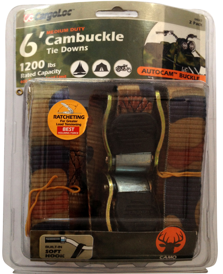 CARGOLOC 2PC 6′ CAMO LOCKING TIE DOWNS WITH S-HOOKS